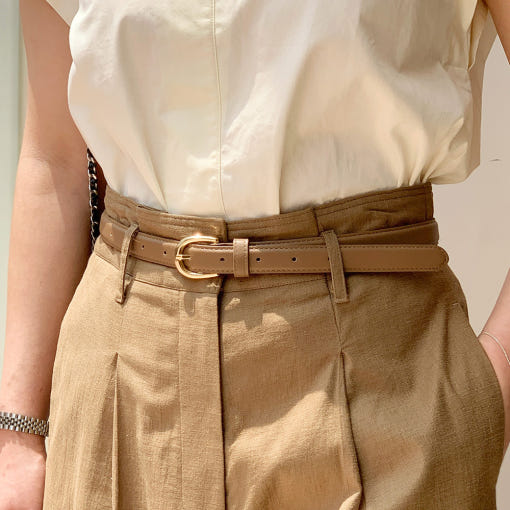 여자 원피스 정장 바지 둥근 금장 버클 얇은 슬림 가죽 벨트