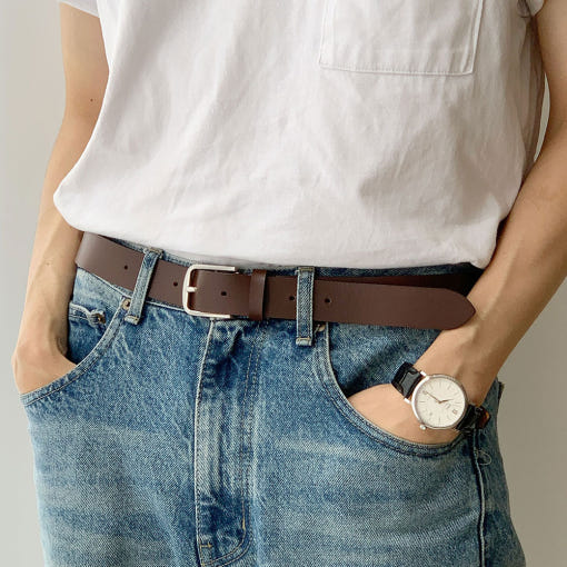남자 이태리 소가죽 허리띠 은장 버클 벨트(M,L사이즈)